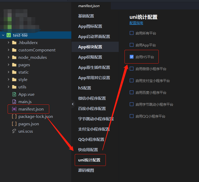 项目中打开 manifest.json => uni统计配置 => 启用H5平台